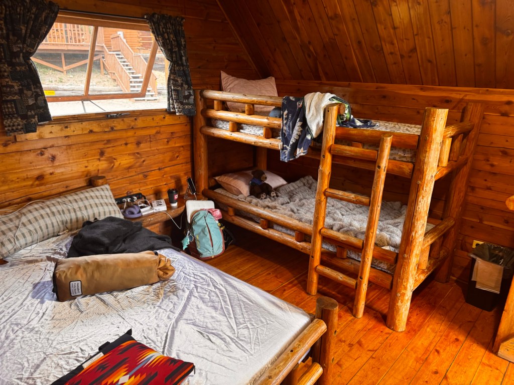 This one is just a few miles from that iconic red roof of the Stanley. When we pulled into our cabin, the girls next door were packing up and asked if we wanted their leftover firewood. We didn’t end up using it, but we stood at the window and watched them carry it three doors down to someone else.