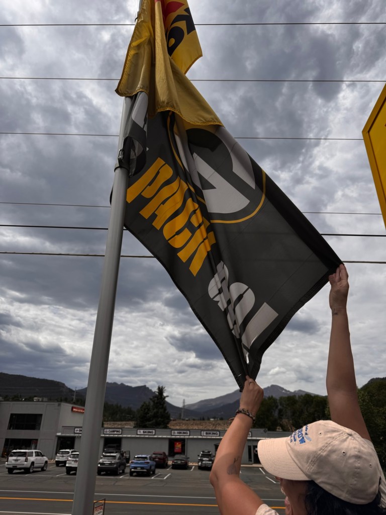 So when we pulled into the KOA in the heart of Bronco country, and the first thing we saw waving overhead was a giant Packers flag, we just laughed. Of all the places.
